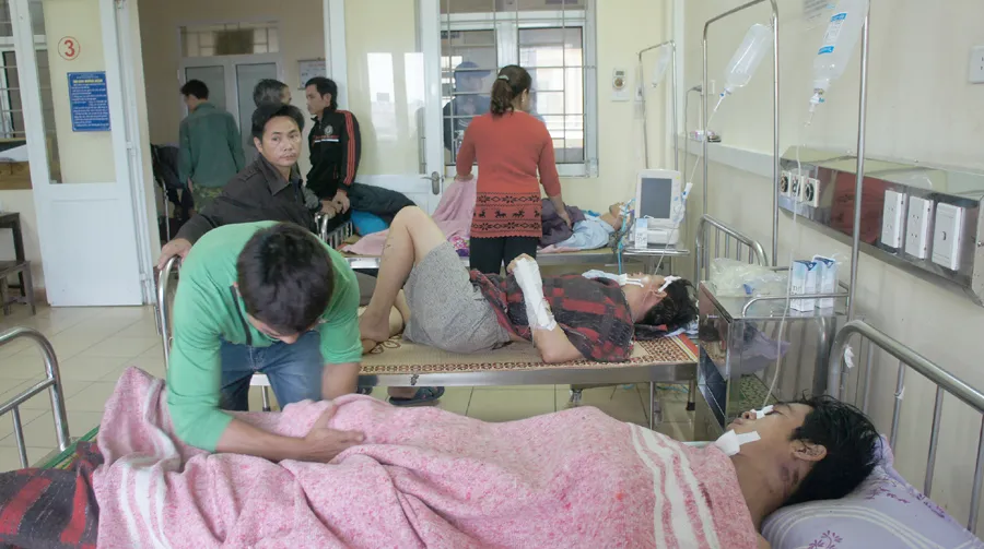 Các công nhân bị thương nhẹ hơn đang được cấp cứu, điều trị, chăm sóc tại Khoa Chấn thương, BV Đa khoa tỉnh Hà Tĩnh. Ảnh: ĐẮC LAM