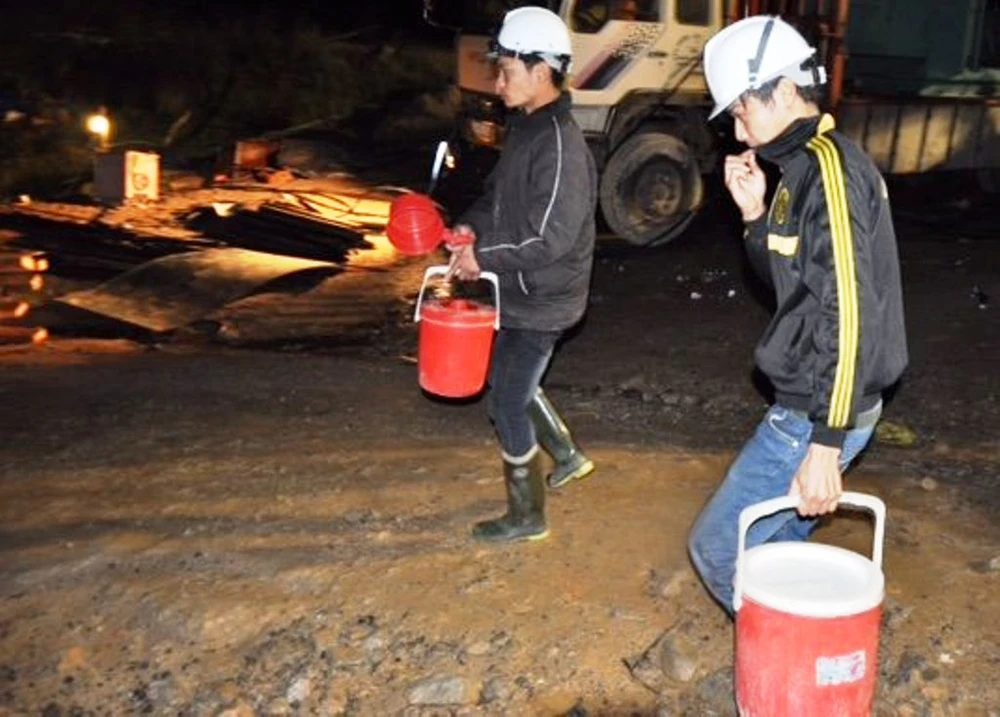 Cháo được đưa đến truyền vào 12 anh em còn bị kẹt trong hầm thủy điện Đạ Dâng