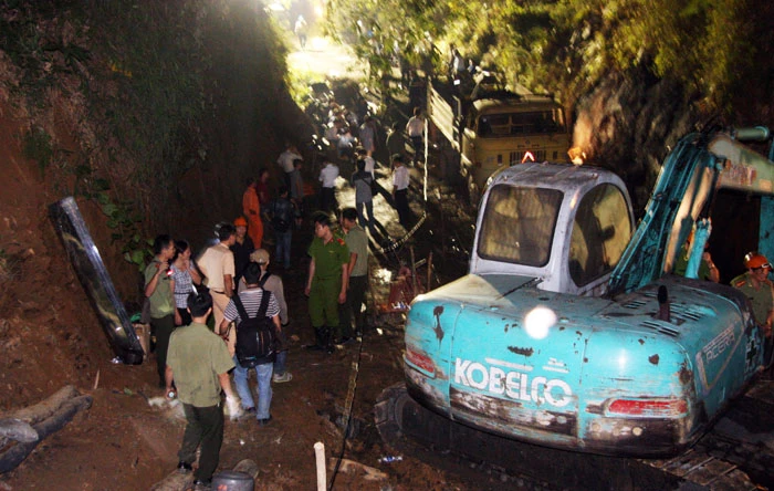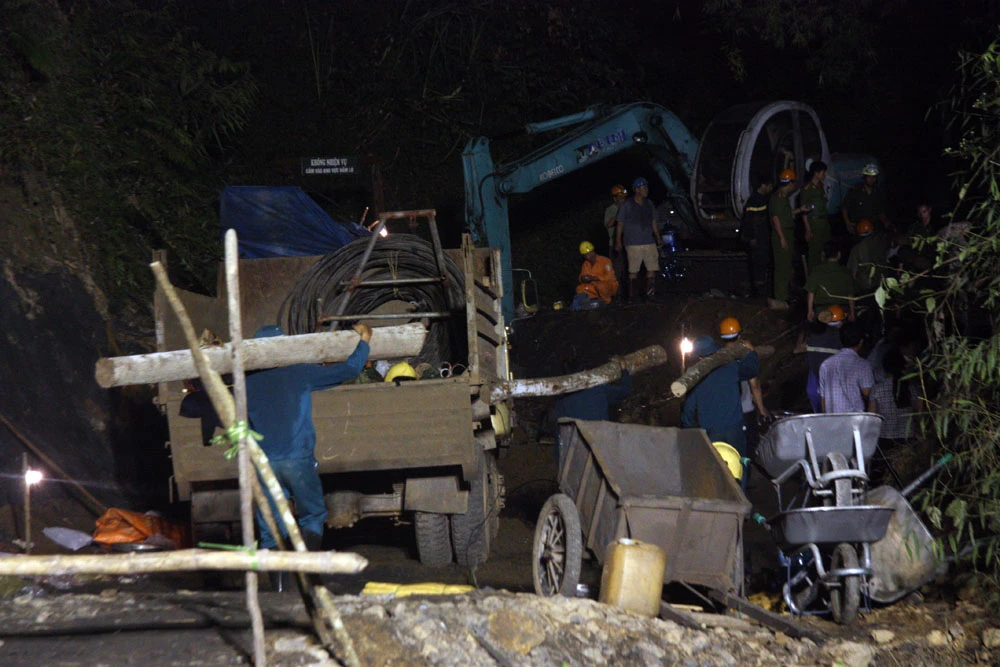 Hiện công tác cứu hộ hai nạn nhân bị mắc kẹt trong hầm vẫn đang được lực lượng chức năng triển khai tích cực, bất kể trong đêm tối.