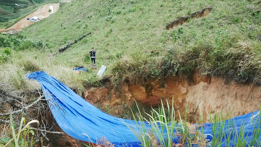 Hố sâu trên 5 m nằm trên đường ống xuyên qua núi