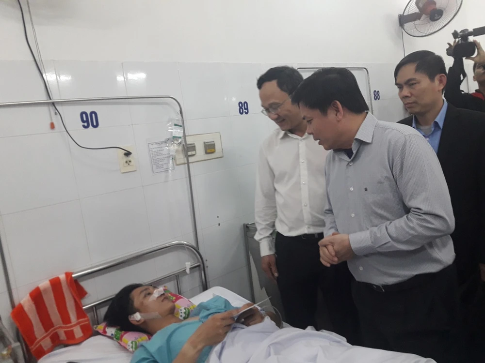 Bộ trưởng Nguyễn Văn Thể thăm hỏi tình hình sức khỏe các nạn nhân.