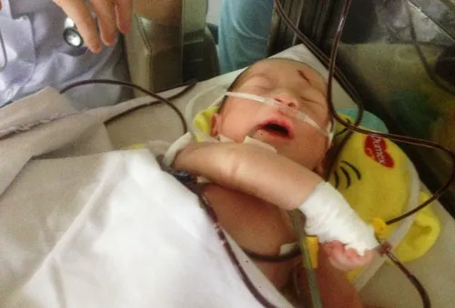 Cháu bé đang được điều trị tại Bệnh viện Nhi Đồng 1. Ảnh: Kiến thức