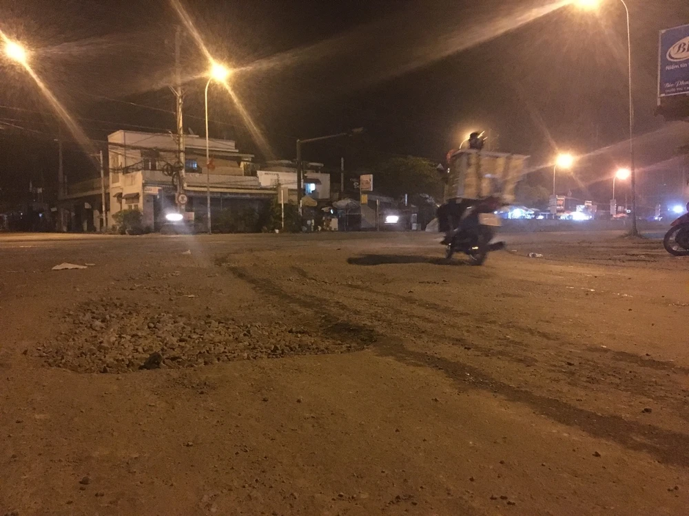 Chỉ vào mặt đường nham nhở, anh Hải nói do đoạn đường thường xuyên có xe trọng tải lớn lưu thông nên rất nhanh xuống cấp. Người dân đi đêm hôm rất dễ xảy ra tai nạn. Anh cho biết tại nạn chết người thì chưa thấy nhưng té ngã thì như cơm bữa, từ xây xát đến mức phải nhập viện.
