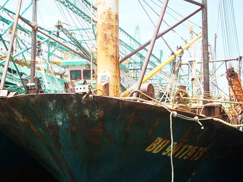 Một con tàu vỏ thép của ngư dân Bình Định do Công ty Đại Nguyên Dương đóng bị rỉ sét trầm trọng. Ảnh: TL