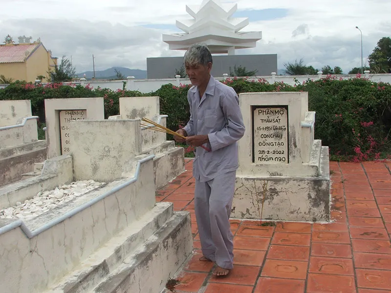 Ông Sáu Thời thắp nhang tưởng nhớ toàn bộ gia đình mình đã bỏ mạng trong vụ thảm sát tang thương. Ảnh Phương Nam