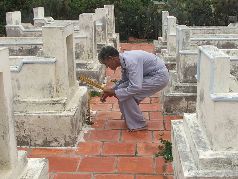 Ông Sáu Thời thắp nhang tưởng nhớ toàn bộ gia đình mình đã bỏ mạng trong vụ thảm sát tang thương. Ảnh: PHƯƠNG NAM