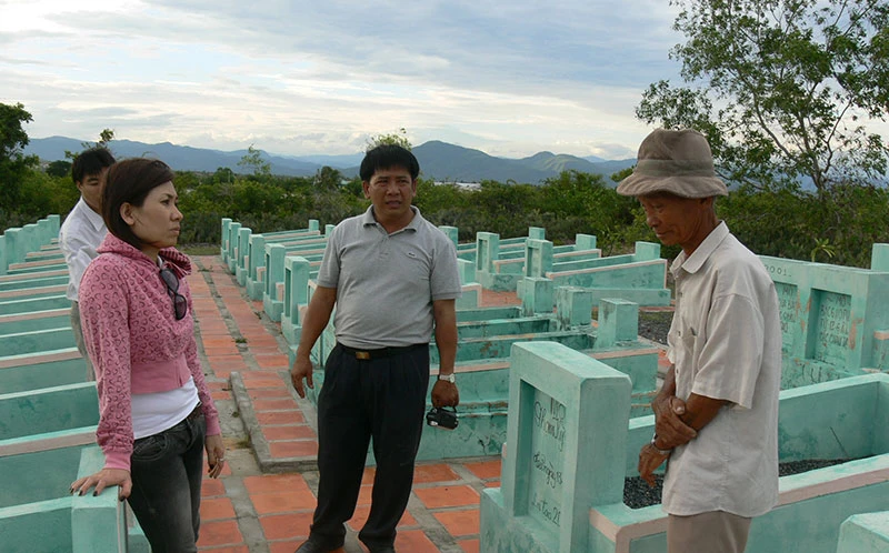 Ông già ngồi giữa cái nắng khô khốc như đổ lửa ở Tuy Phong, giữa những ngôi mộ giống hệt nhau nhìn xa xăm ra đồi cát. Vò mái đầu bạc trắng, ông Sáu day dứt cho biết tất cả mồ mả của gia đình ông đều do những người còn sống trong làng sau vụ thảm sát chôn cất. Khi ông lành lặn họ mới chỉ 12 ngôi mộ đất mà họ đã chôn nên sau này khi cải táng ông không thể phân biệt đâu là mộ cha, mẹ đâu là mộ của anh, chị, em trong nhà. Vì thế tất cả các ngôi mộ đều giống nhau và đều ghi trên bia mộ dòng chữ “Phần mộ thảm sát”. Để cải táng, xây 12 phần mộ này, ông Thời đã phải bán đất và tiền dành dụm nhiều năm trời mới làm được. Tại đây, ông cũng đã dành sẵn một chỗ cho mình để sau này xuôi tay về đoàn tụ với gia đình.