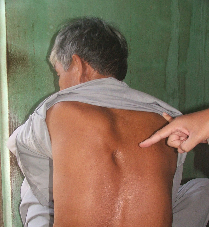 Vết thương sau lưng ông Thời vẫn còn in hằn sau hơn nửa thế kỷ. Ảnh: PHƯƠNG NAM