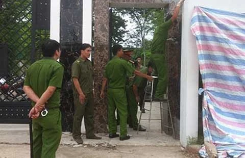 Công an đang khám nghiệm hiện trường vụ thảm án. Ảnh: NGUYỄN ĐỨC