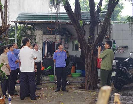 Các đơn vị trong ban chuyên án kiểm tra hiện trường. Ảnh: N.ĐỨC