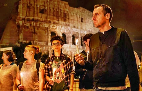 Đêm canh thức tại Rome (Ý) tưởng nhớ các nạn nhân vụ thảm sát ở Orlando. Ảnh: AFP
