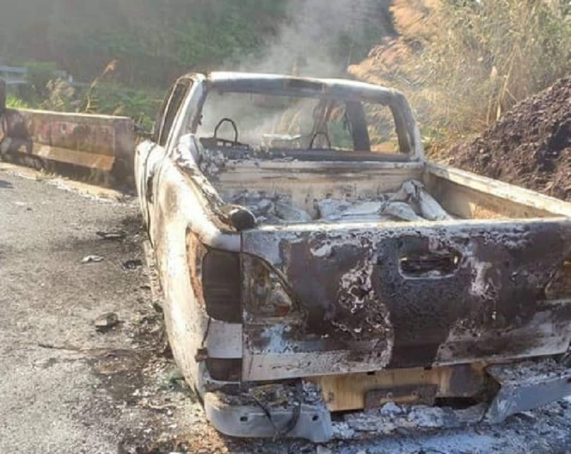 Cơ quan chức năng xác định, chiếc xe bán tải bị cháy trơ khung là của ông Đỗ Văn Minh.
