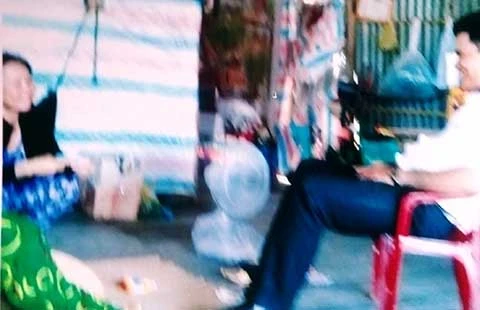 Ông Cảnh (phải) đến nhà bà Lưỡng (trái). (Ảnh do gia đình bà Lưỡng cung cấp)
