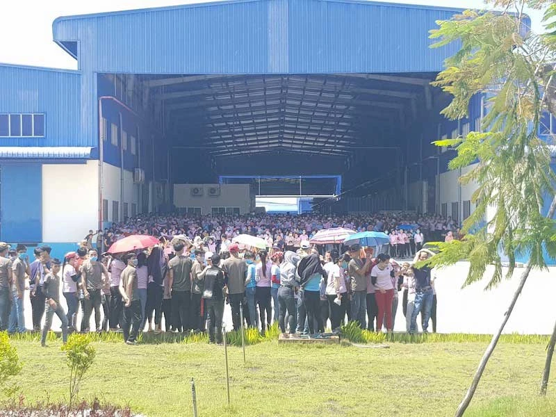 Công nhân tập trung tại nhà điều hành của công ty. Ảnh: TN