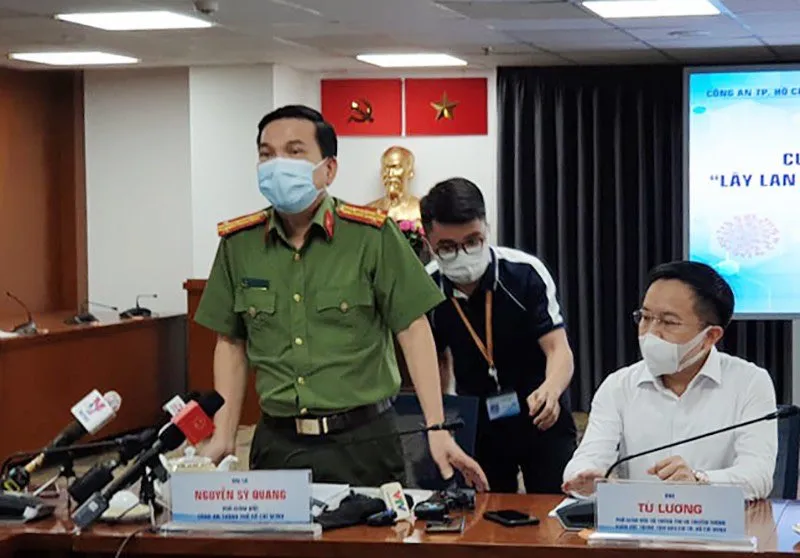 Công an tổ chức họp báo thông tin về việc khởi tố vụ án liên quan đến BN 1342. Ảnh: NT
