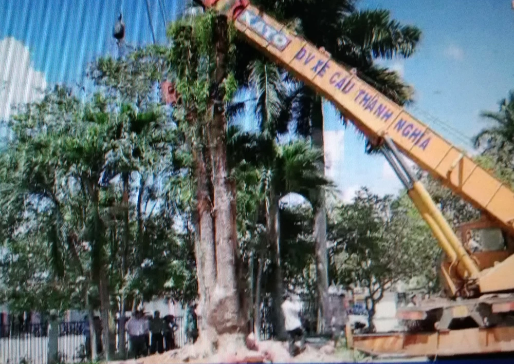 Chuẩn bị di dời cây giáng hương về trụ sở Chi cục Kiểm lâm tỉnh Tây Ninh. Ảnh: LÊ ĐỨC HOẢNH/TTXVN