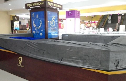 Khu vực cửa hàng SJC Minh Khai đã bị niêm phong sau vụ trộm.
