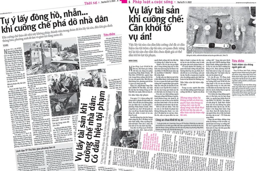 Trong tuần qua, những thông tin về vụ việc lấy tài sản khi đang cưỡng chế đã nhận được nhiều sự quan tâm của bạn đọc.