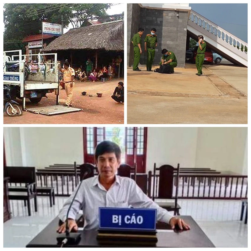 Ông Phước khi còn là bị cáo và hiện trường vụ tai nạn giao thông cùng hiện trường nơi ông tự tử. Ảnh: MTG