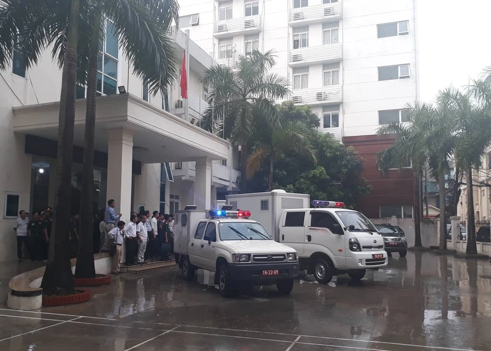 Đoàn xe chở Út "trọc" cùng đồng phạm rời tòa. Ảnh: TUYẾN PHAN