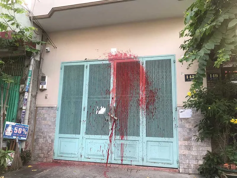 Các đối tượng lạ đã đến tạt sơn, chất bẩn vào công ty của chị PTNT tại quận Tân Phú. Ảnh: ĐẶNG LÊ