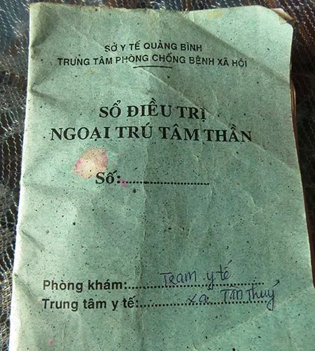 Ông Trần Quang Toán bị tâm thần 30 năm vẫn bị thôn liệt vào danh sách nộp tiền làm đường như người thường, xin giảm cũng không cho... (Ảnh dưới: Sổ điều trị tâm thần ngoại trú của ông Toán). Ảnh trong bài: MINH QUÊ