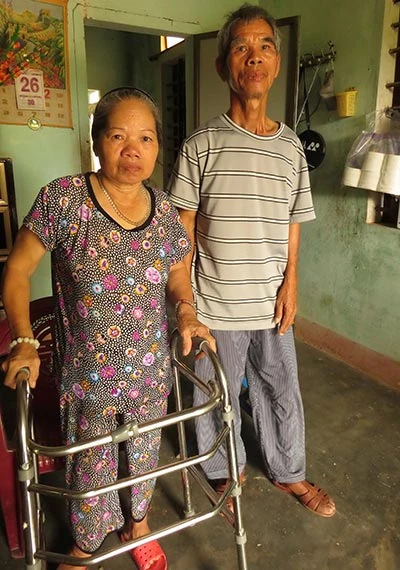 Vợ chồng ông Trị đi xe lăn cũng bị thu và cấn trừ tiền từ thiện.