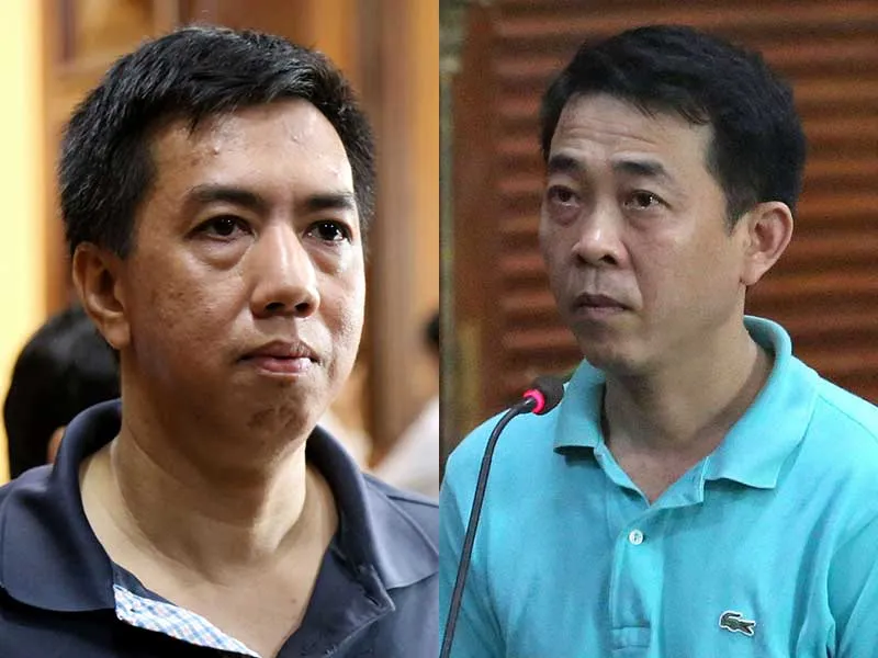 Bị cáo Võ Mạnh Cường (trái) và bị cáo Nguyễn Minh Hùng tại phiên xử sáng 25-9. Ảnh: HOÀNG GIANG
