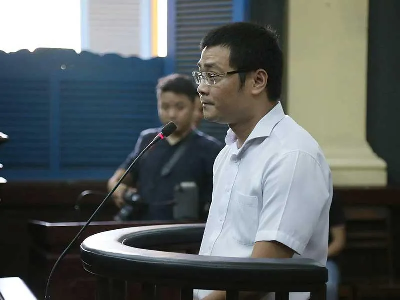 Ngô Anh Quốc (cựu phó tổng giám đốc VN Pharma) tại phiên tòa phúc thẩm năm 2017 vụ buôn lậu thuốc tại VN Pharma (mới đây VKSND Tối cao đã truy tố tội buôn bán hàng giả là thuốc chữa bệnh, sau khi điều tra lại). Ảnh: HOÀNG GIANG