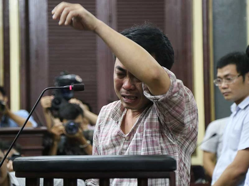 Nguyễn Minh Hùng khóc nức nở khi nói lời sau cùng. Ảnh: HOÀNG GIANG