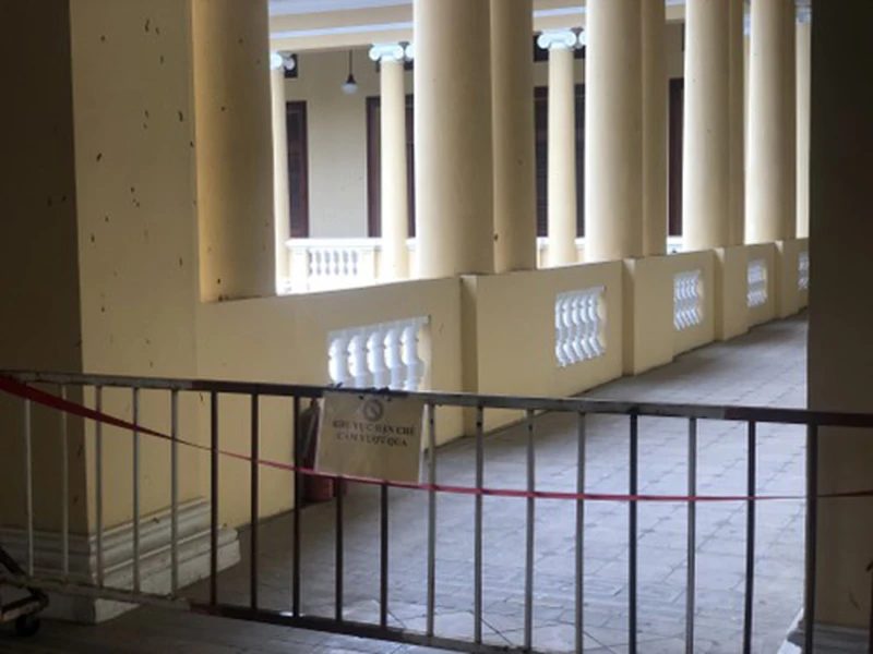 Nơi vợ bị đơn Dư chạy ra hành lang định nhảy lầu tự tử ngay sau khi tòa tuyên án phúc thẩm ngày 1-7. Ảnh: HOÀNG YẾN