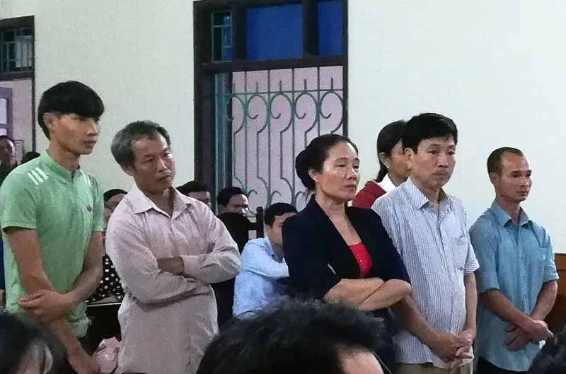 Sáu bị cáo tại phiên tòa sơ thẩm.