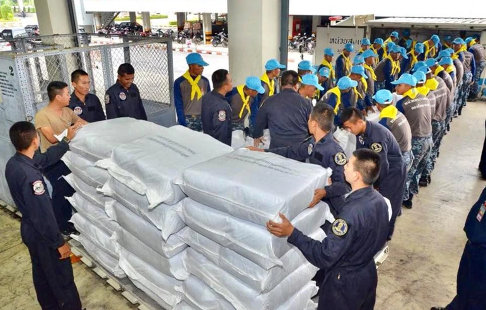 Không quân Hoàng gia Thái Lan chuyển hàng viện trợ cho Lào. Ảnh: Tonamcha News