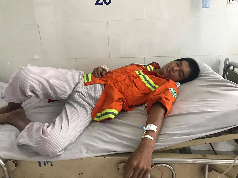 Nam công nhân dọn rác bị thương, phải nhập viện cấp cứu. Ảnh HT