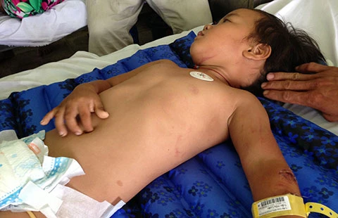 Chiều 8-5, tại khoa Ngoại thần kinh (BV Chợ Rẫy), bệnh nhi Trần Hữu Luân (bốn tuổi, ấp Ô Chức A, xã Lương Hòa, Châu Thành, Trà Vinh) vẫn còn mệt và không nói được gì. TS-BS Nguyễn Kim Chung, Phó khoa Ngoại thần kinh, cho biết bệnh nhi nhập viện lúc 4 giờ sáng 8-5 (được chuyển từ BV Đa khoa tỉnh Trà Vinh lên). Kết quả chụp CT cho thấy xuất huyết não ít, chẩn đoán chấn thương sọ não cần theo dõi. Ngoài ra, bé còn bị xây xát khắp người. Bé được truyền một đơn vị máu.
