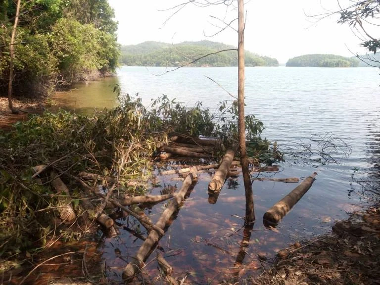 Gỗ tập kết tại khu vực mép nước hồ Phú Ninh nhưng khi kiểm lâm kiểm tra thì đã "mất tích" . Ảnh: HT