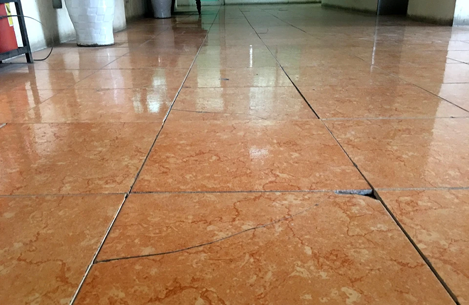 Theo ghi nhận của PV ở bên trong tòa nhà sáu tầng này, nền gạch của tòa nhà hịn có một số điểm bị nở nhiệt, bung vỡ. Tuy nhiên, nhìn chung bề mặt gạch không có quá nhiều điểm như vậy và về cơ bản vẫn còn tốt.