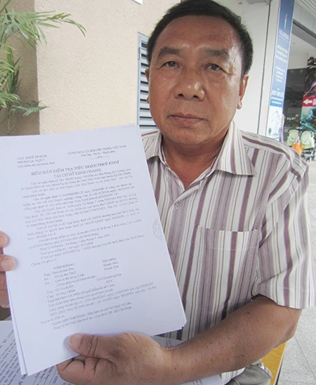 Ông Hồ Thanh Hải cùng hồ sơ kêu oan. Ảnh: Nguyễn Đức
