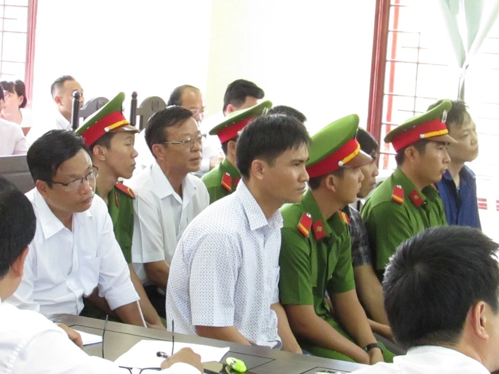 Các bị cáo tại tòa chiều 24-4. Ảnh: NN