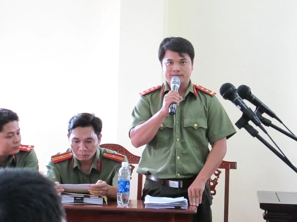 Tổ điều tra viên được tòa mời đến vào chiều 24-4 để giải thích một số vấn đề liên quan đến kết luận định giá tài sản. Ảnh: NN