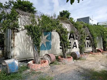 Công trình container của bà Tuyết, sát bên khu vực quán cà phê Xin chào của ông Tấn, đối diện Công an huyện Bình Chánh.
