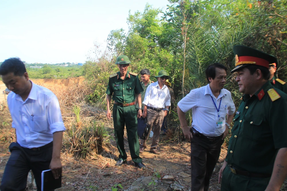 Kiểm tra hiện trường khu vực nghĩa trủng Nghi An bị xâm phạm trong chiều 11-5.
