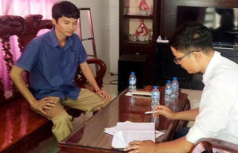Ông Lưu Minh Sang (trái), chủ cơ sở Viet foods, bức xúc trao đổi với PV. Ảnh: TN