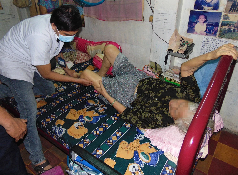 Theo y sĩ Minh, không ít bệnh nhân sống trong nhà có cầu thang xoắn ốc hoặc cầu thang gỗ cũ mục. Do vậy, khi di chuyển bệnh nhân phải hết sức cẩn thận để không làm đau và tuyệt đối đảm bảo an toàn.