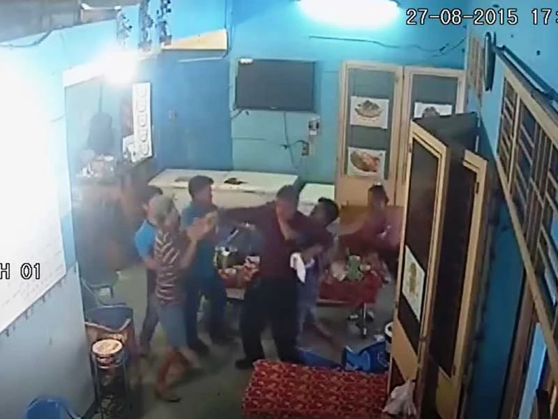 Cảnh hỗn chiến tại quán khiến ông T. rơi điện thoại. Ảnh cắt từ clip