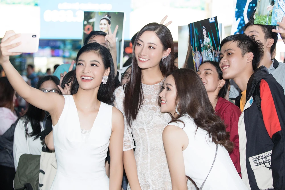 Các fan hâm mộ chụp ảnh cùng tốp 3 Hoa hậu Thế giới Việt Nam.
