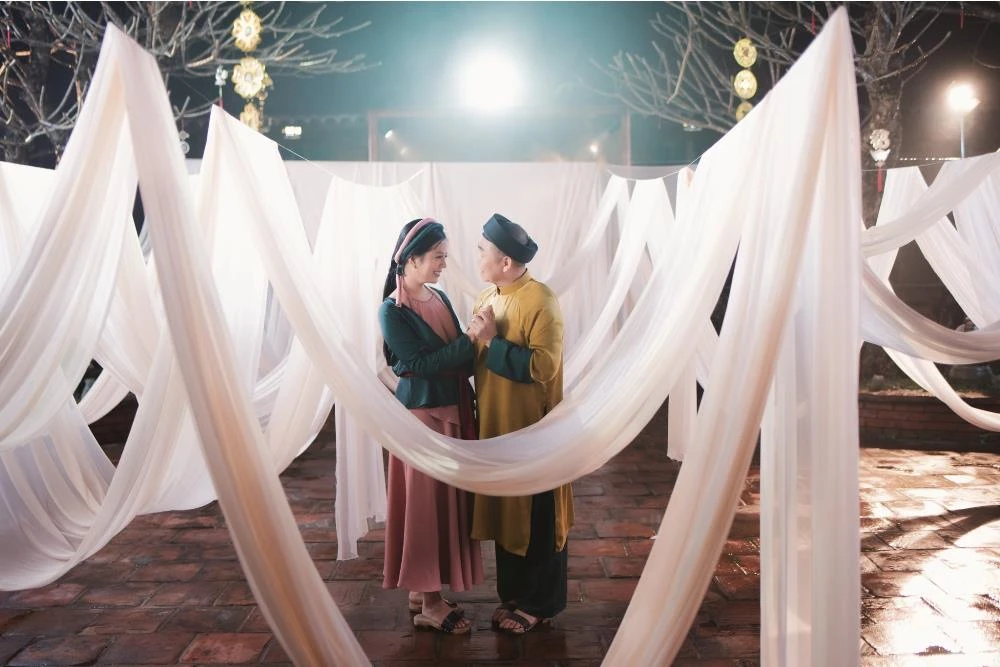 Hình ảnh Xuân Hinh và Đinh Hiền Anh trong MV.