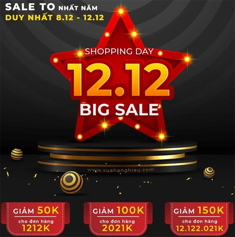 Vua Hàng Hiệu khuyến mãi ngày 12/12, giảm giá toàn sàn, tặng voucher tới 150K
