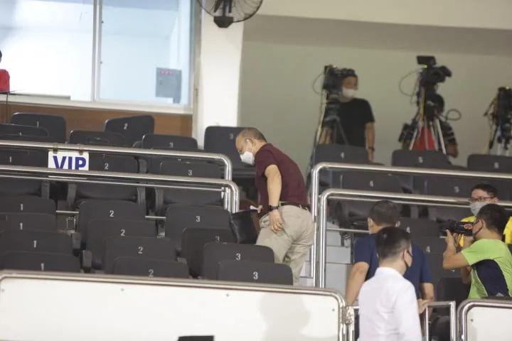 Khu khán đài VIP thời dịch COVID-19, HLV Park Hang-seo cùng trợ lý của mình.