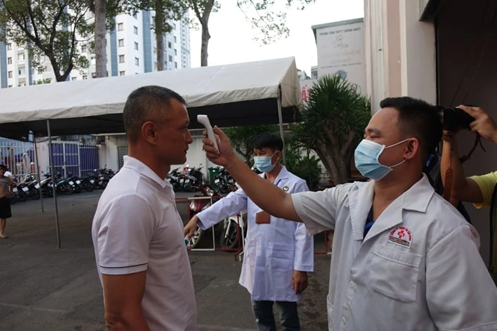 HLV Ngô Quang Trường cũng được kiểm tra thân nhiệt.